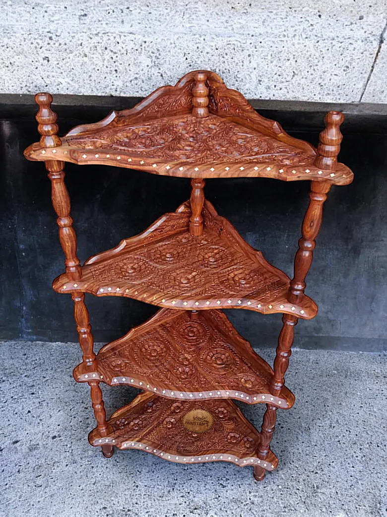 Elegant Wooden Corner Stand – Hand-Made Pakistani Carving 4-Tier Shelf