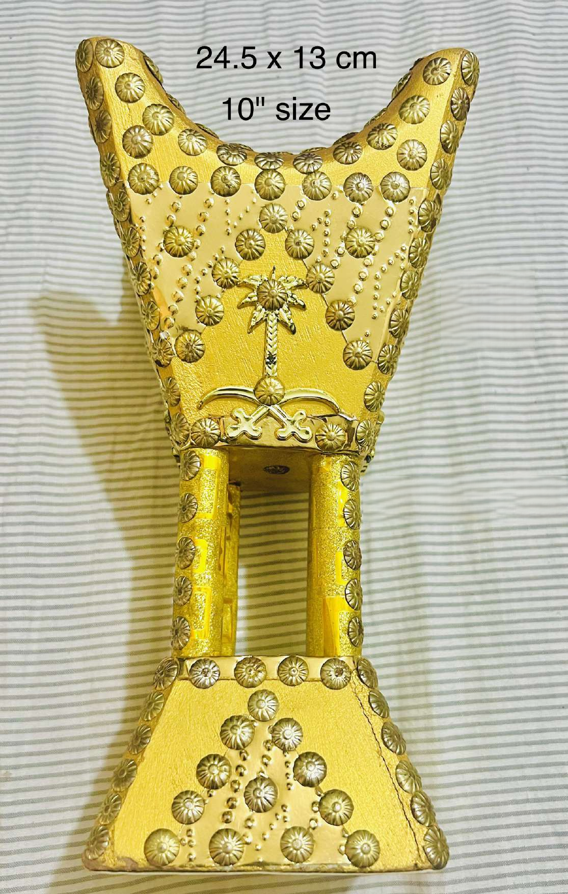 Immerse yourself in opulence with our golden wooden incense burner, meticulously crafted to exude elegance and sophistication. The lustrous golden hue adds a touch of luxury to any space, instantly elevating the ambiance and leaving a lasting impression. Adorned with the iconic two swords and palm tree logo in gleaming gold, this burner becomes a statement piece that commands attention and admiration. Whether displayed as a centerpiece or nestled among your décor, its radiant presence transforms your surroundings into a haven of warmth and beauty.