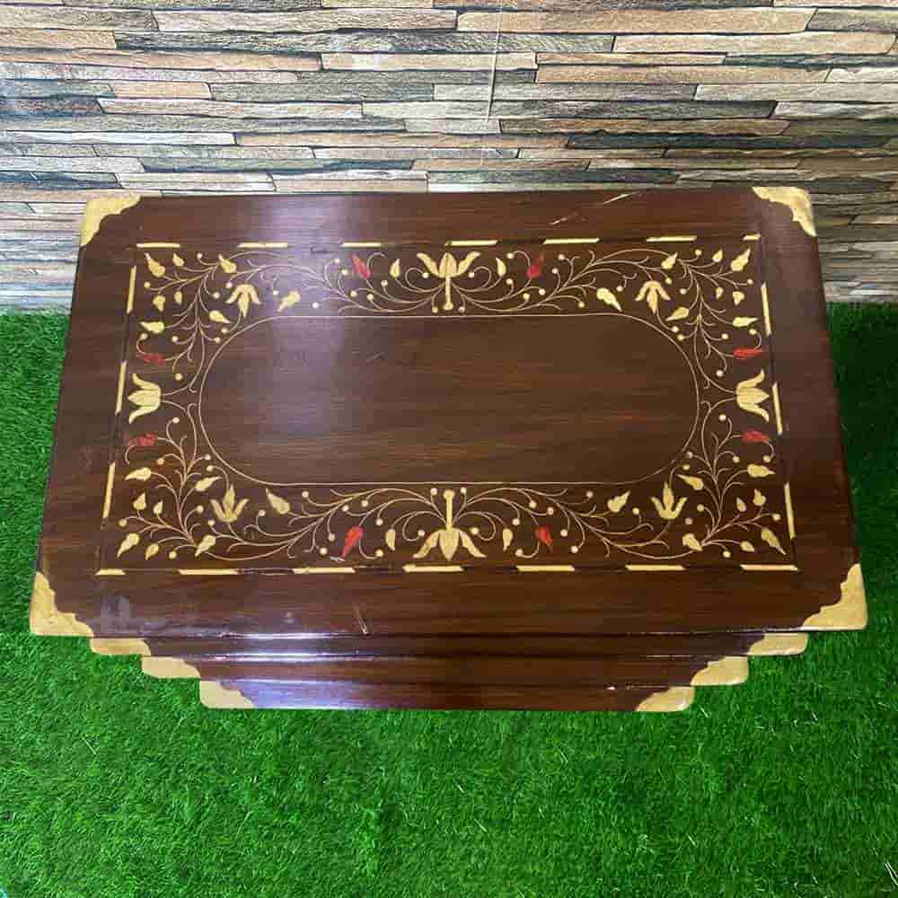 Features:Crafted From Wood with Brass Work.Dark Brown Finish.Simple Floral Design.Sleeky Straight LegsSet of 4. Dimensions:Large Table: 17.5″W x 11″D x 20″HExtra Large Table: 20″W x 12″D x 21″HMedium Table: 15″W x 10″D x 19″HSmall Table: 13″W x 9″D x 18″H