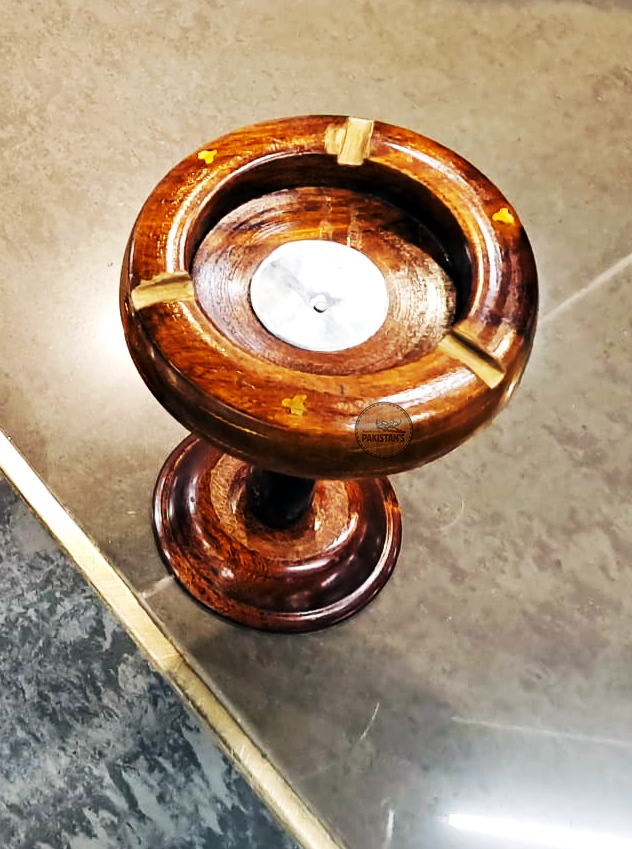 Handcrafted Excellence: Wooden Ashtray with Brass Work