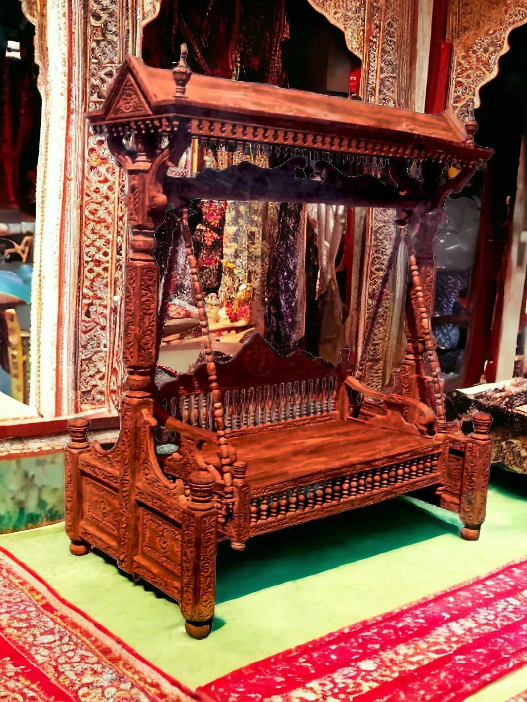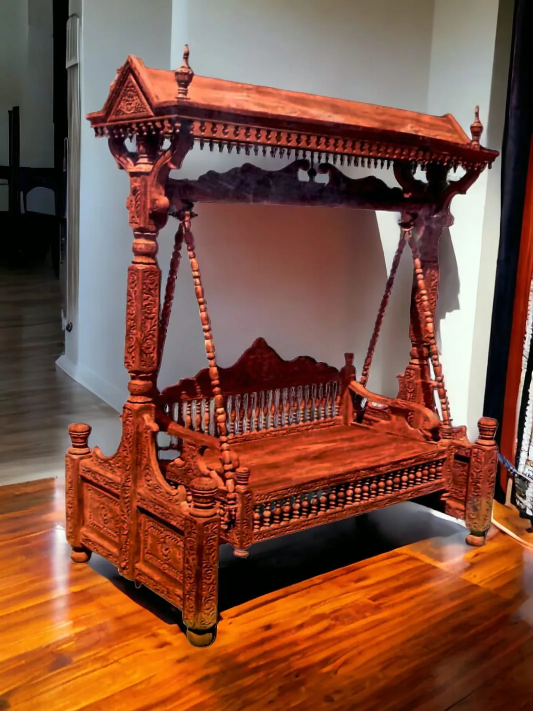 Immerse yourself in the timeless beauty of our wooden swing jhula, meticulously handcrafted by skilled artisans. Each piece is a testament to exquisite craftsmanship, showcasing intricate wooden carvings that add a touch of regal elegance to any interior. The detailed designs tell stories of tradition and artistry, making this swing jhula not just a piece of furniture, but a centerpiece that enhances your home’s aesthetic appeal. Let the warmth of the rich wood and the artistic carvings create a serene and inviting atmosphere in your living space.