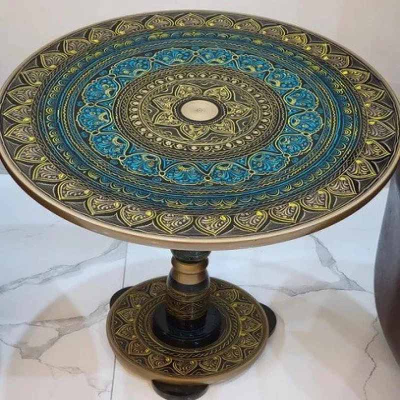 Discover the Artistic Table With Nakshi Art Top – Sky Multi Colour Masterpiece