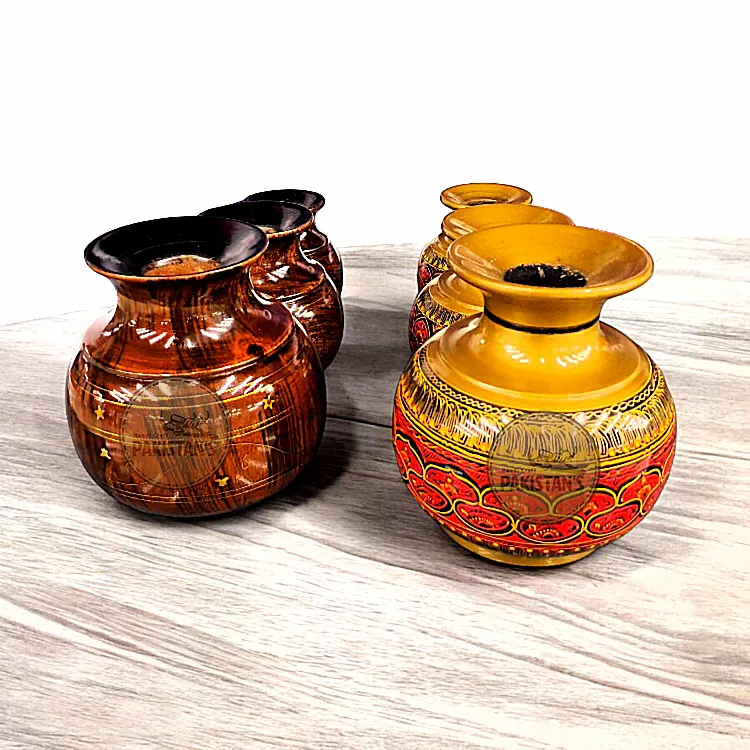 Bring a touch of luxury and sophistication to your home decor with our Wooden Brass Material & Naqshi Ghara Set of Three. The rich wood tones and gleaming brass details create a stunning visual contrast, making these pieces stand out in any room. Perfect for those who appreciate fine craftsmanship and elegant design, this set is a testament to the beauty of traditional artistry. Each piece is a unique work of art, adding depth and character to your home.