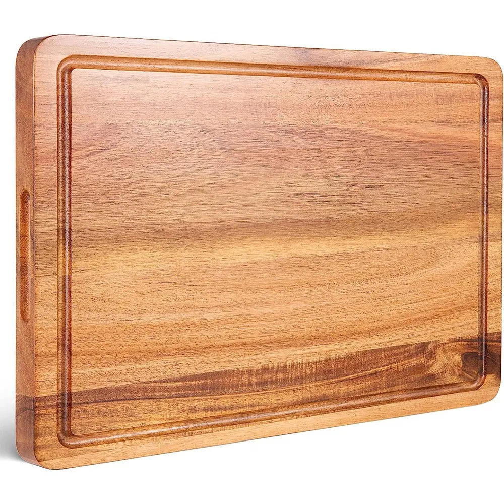 - Durable Construction: Built for the toughest kitchen tasks, this cutting board’s solid wood construction is moisture-resistant and long-lasting.