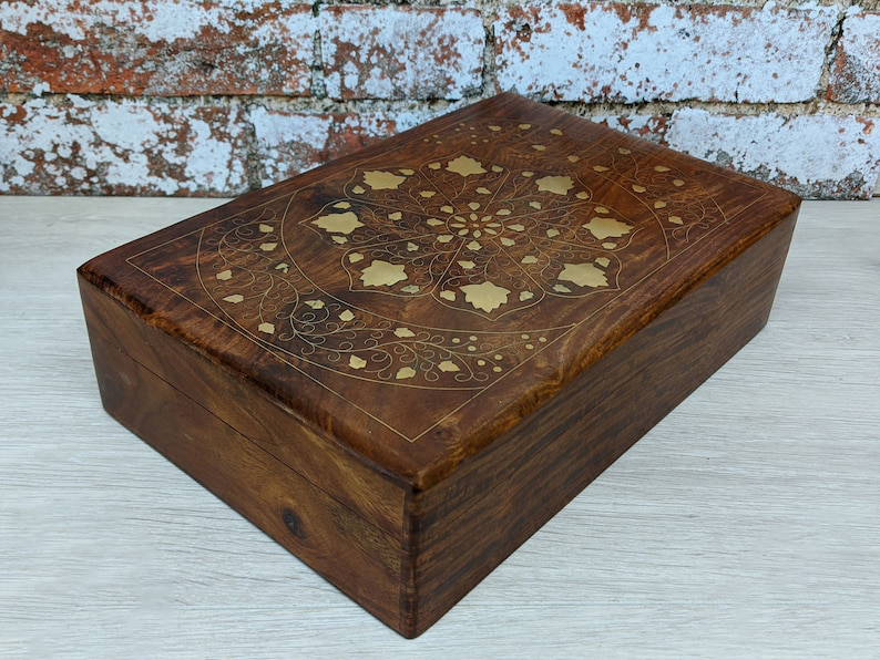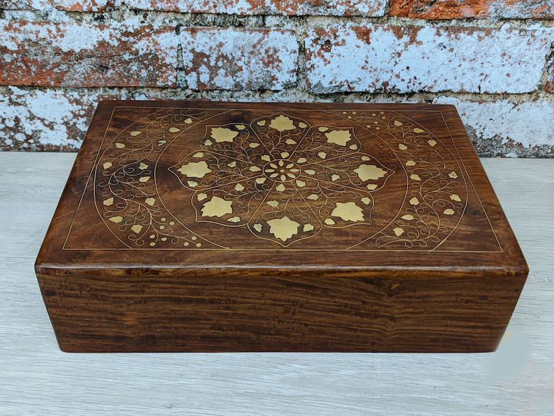 Introducing our stunning collection of wooden floral boxes, ornate jewellery boxes, brass inlaid treasures, and more! Elevate your gifting with our exquisite selection of wooden gifts, including large jewellery boxes and keepsake boxes, all featuring a captivating Boho chic design. Perfect for commemorating special occasions like anniversaries or simply delighting her with a thoughtful gift.